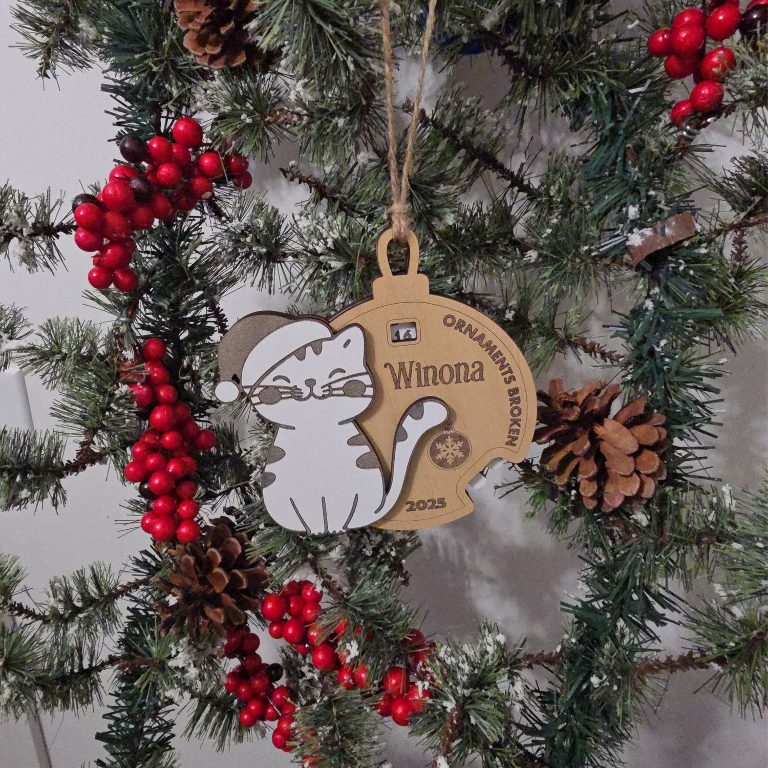 This ornament is both fun and functional keeping track of the number or ornaments your beloved cat has broken. It counts from 0 through 24. It will help remind you if they are on the nice or naughty list.